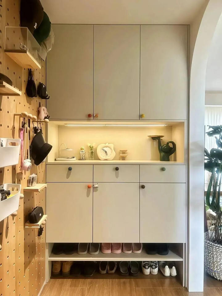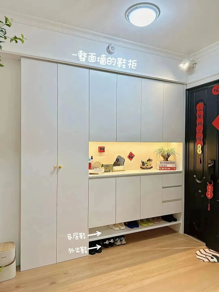 而且,这里还得有足够的收纳空间!毕竟鞋子、包包、乱七八糟的小物件,总不能随便丢一地吧?一个收纳柜就显得格外重要。