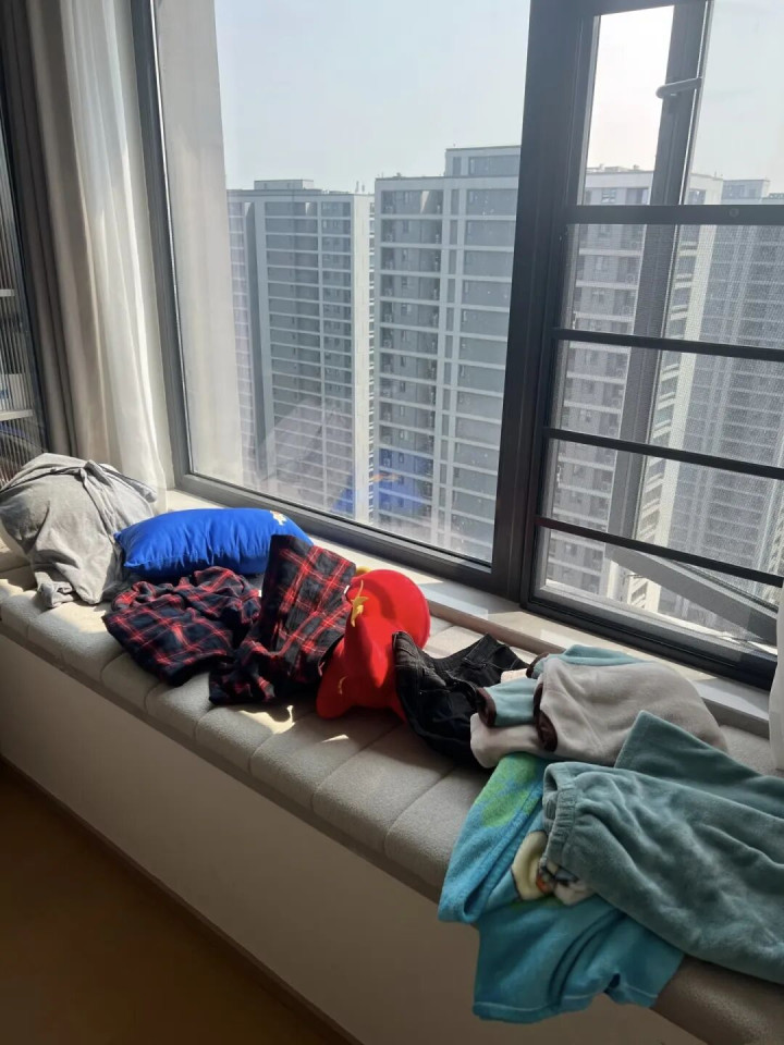 在这些新房里,有个统一的“现象级”问题,那就是飘窗和凳子上全都堆满了外套、围巾,还有各种没地方放的衣物。