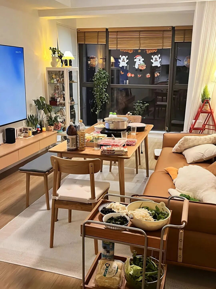 所以说,咱也不必追求那种“大体量沙发”,也不一定非得放个超级大茶几。我们可以选个随时可以推来推去的移动小车,不仅空间开阔、通透,而且还特别容易打扫,感觉整个家都清爽了不少。