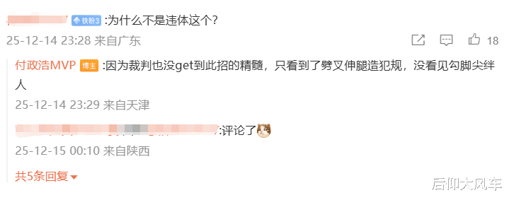不妨来看看赛后媒体人付政浩对于这个动作的解读,由于邬挺嘉绊倒徐杰的这个动作实在太过恶劣,一向对于CBA赛场上此类动作颇有研究心得的付老师为此还特意写了一篇长文,详细解读了邬挺嘉这个动作的“精妙”之处。