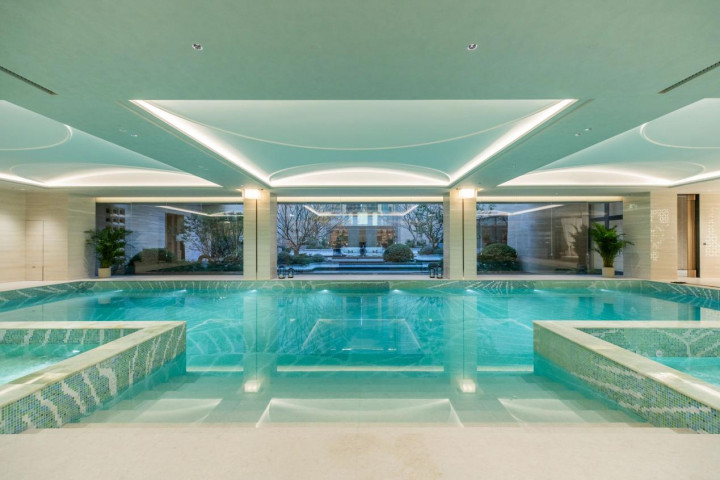 健身房配备韩国Anyfitness设备,高尔夫练习室搭载35英寸4K巨幕,私宴厅、棋牌室、瑜伽室等为多种文化活动提供场地,水幕泡池式泳池设计,此前仅见于上海丽晶酒店,住宅领域还是首例。