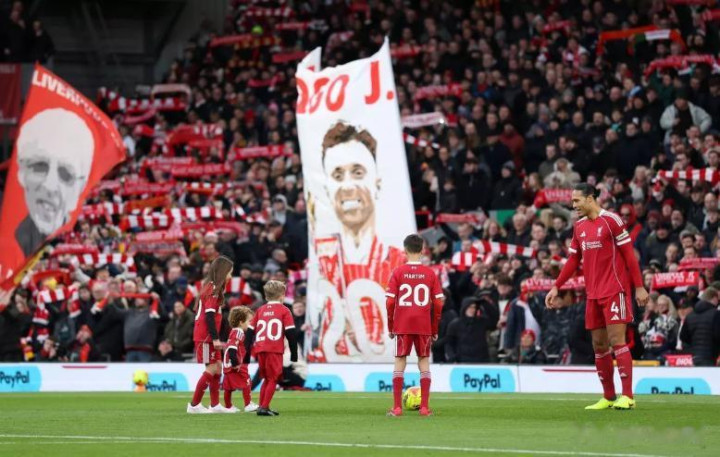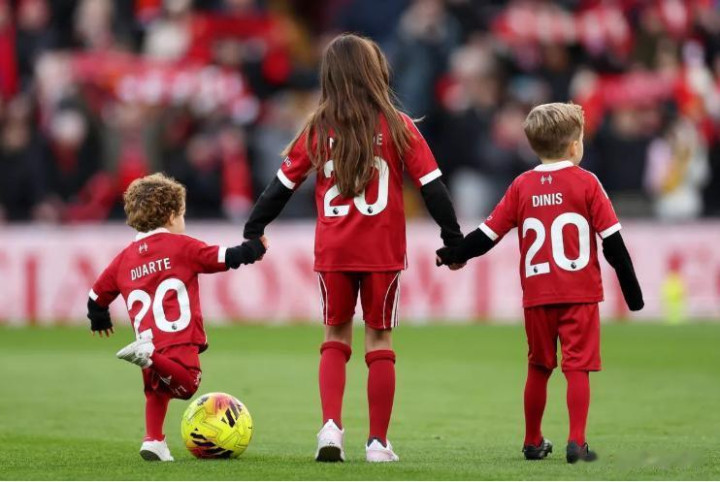 一位球迷写道:“今天在安菲尔德见到你们真好,迪奥戈一定在微笑地看着他的儿子们在这里奔跑。”