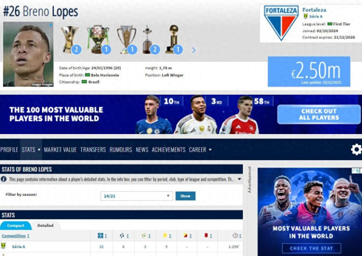 第一个,他本赛季为巴甲球队福塔莱萨已经独造17球,是整个队内直接参与进球数最多的头号球星。虽然只有29岁,但是他已经有多达167场巴甲比赛经验,光在巴甲联赛,他就贡献26球10助攻,整个职业生涯他在巴西已经独造87球,非常恐怖的数据。